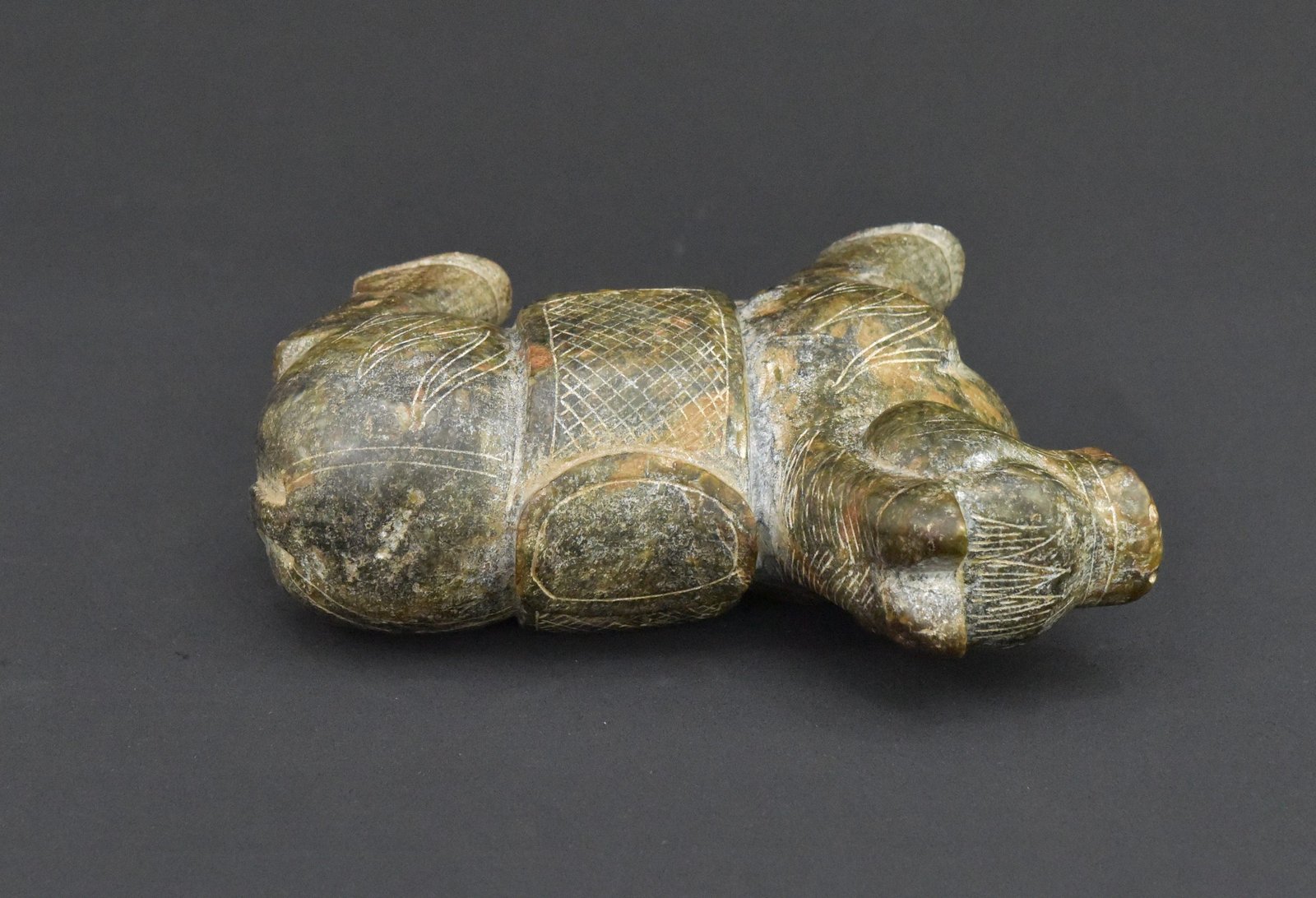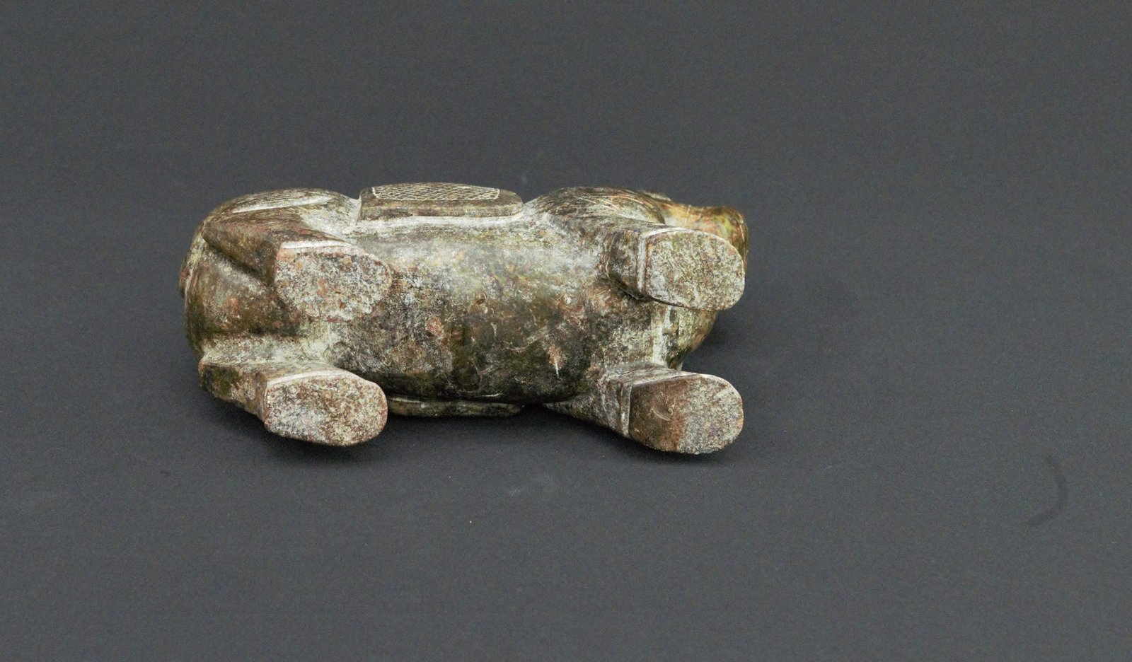 This captivating figure depicts a powerful guardian horse, echoing ancient Chinese artistry and spiritual symbolism. Carved from a dense, stone material that closely resembles jade, this sculpture carries the essence of protection, strength, and endurance. The stylized form and engraved detailing suggest it may have served as a mystical or ceremonial figure.