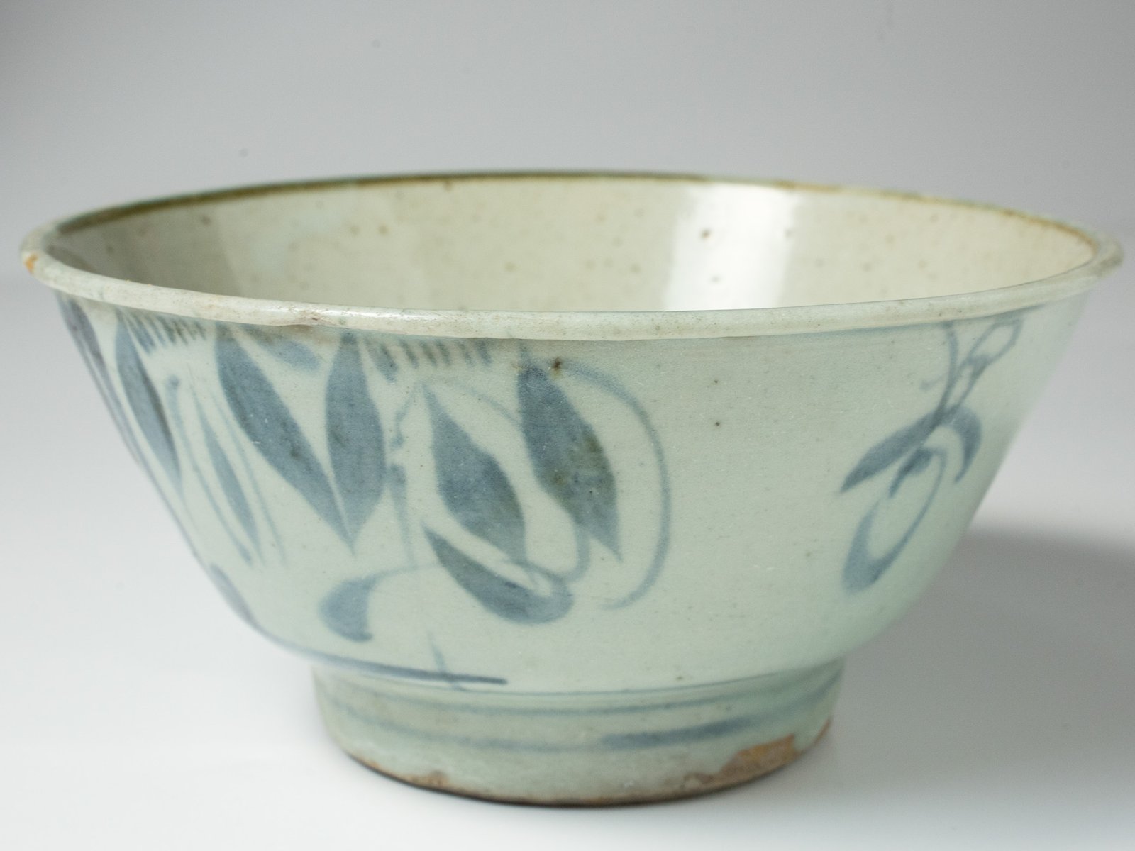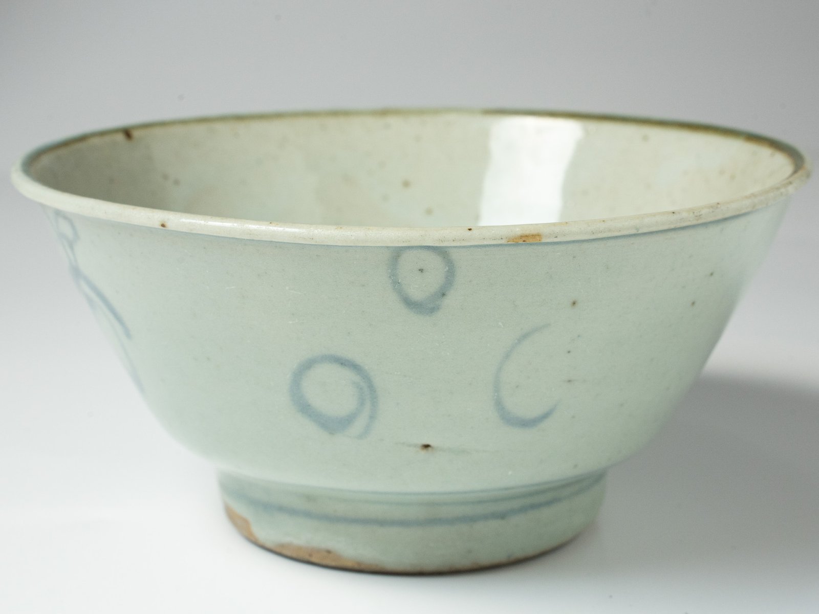 Blue and white antique Chinese porcelain bowl from the Qing dynasty, the exterior of this bowl shows bees with continues lines and three marking.