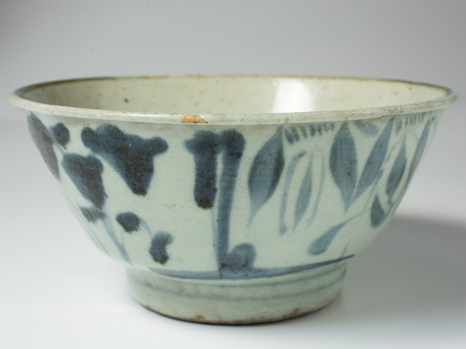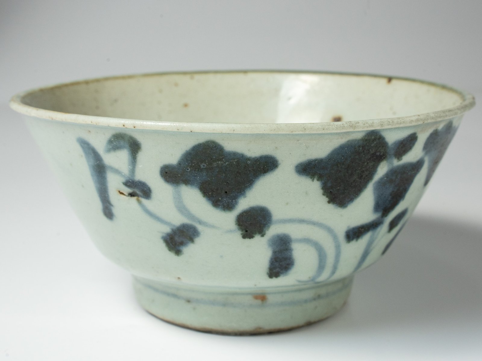 The bowl has rust spots, and a cracked line that can be seen from inside and outside