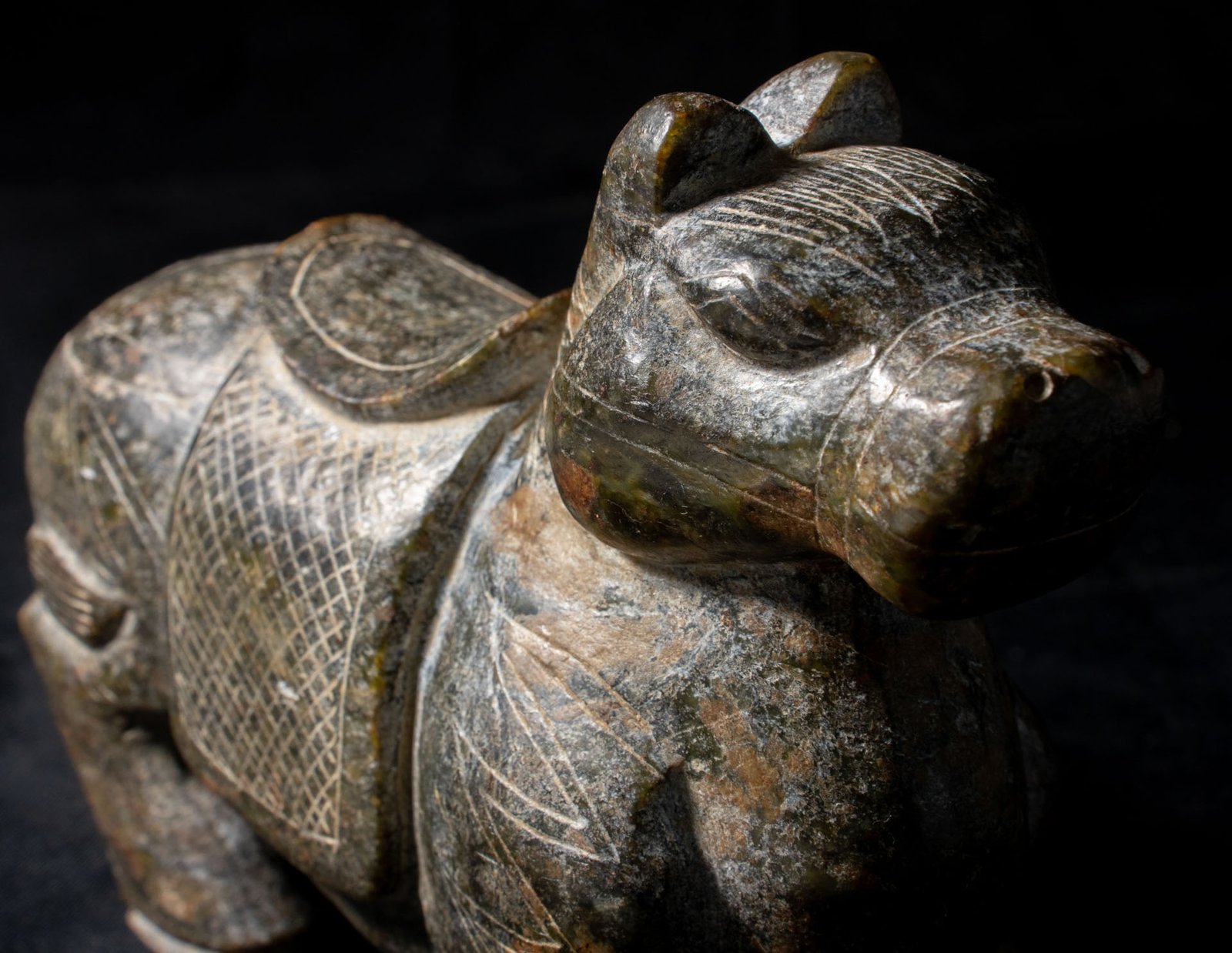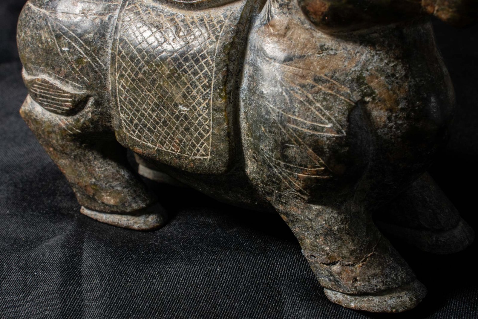 As a symbol deeply rooted in Chinese tradition, the rhinoceros holds auspicious meanings, often associated with warding off negative energy and bringing good fortune. This antique sculpture not only serves as a testament to the rich artistic heritage of ancient China but also as a captivating piece that carries with it the cultural symbolism and historical legacy of the time.