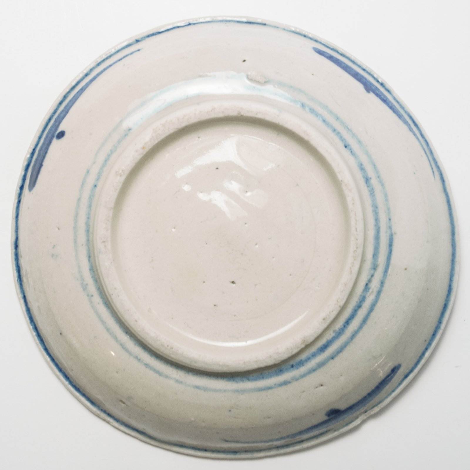 Its base grows with traditional Chinese arches until it reaches a blue sky full of clouds with beautifully represented white doves in full flight, symbol of a long life. The body grows to a slightly flared rim, highlighted from the inside with a double line medallion, which frames the exquisite inner figure of the piece that shows the vivid painting of another couple of doves flying peacefully over a sky full of clouds, creating a harmonious and captivating image.