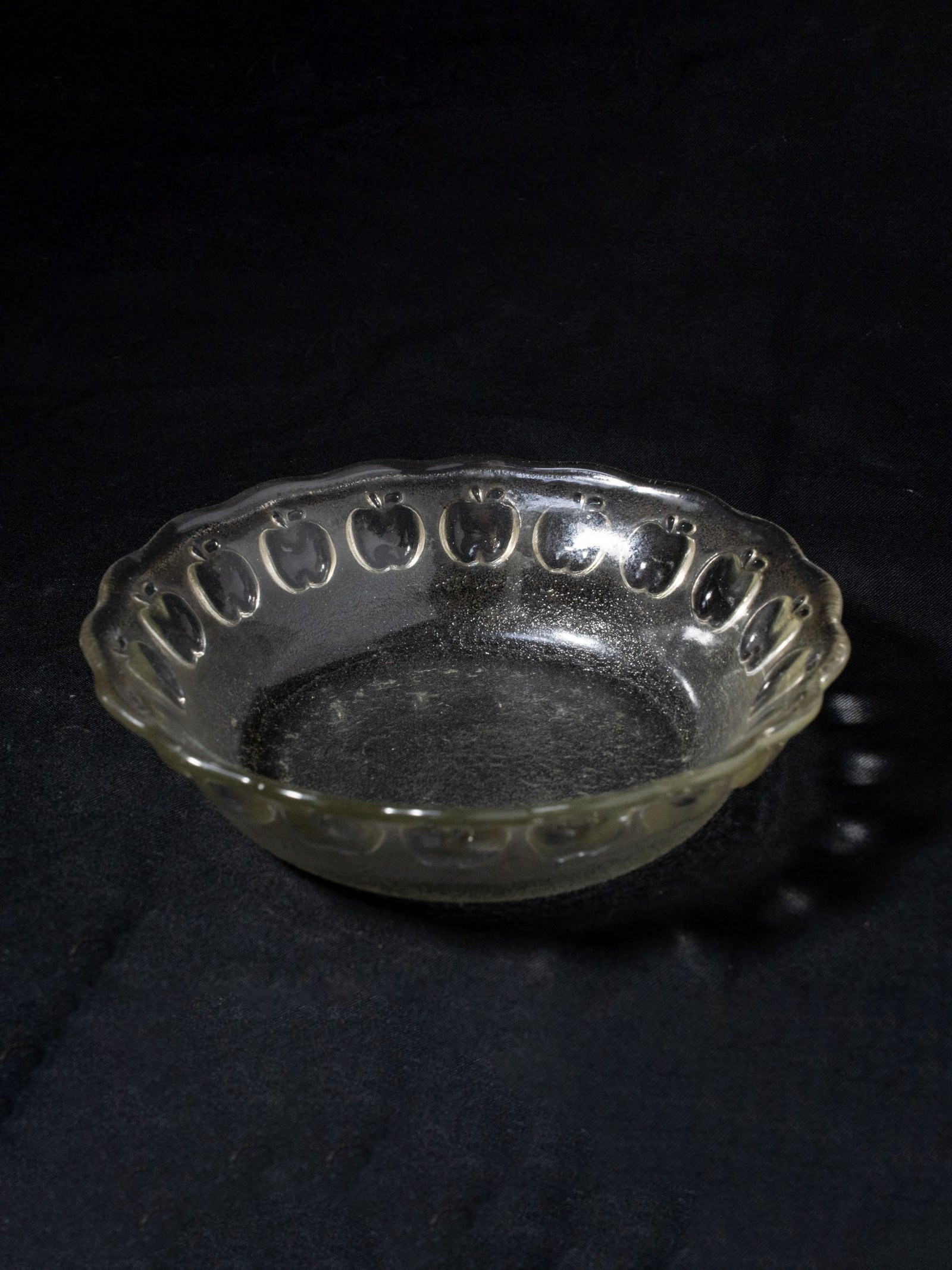 Chinese Clear Glass Bowl with a Design of Apples and Leaves Etched onto It