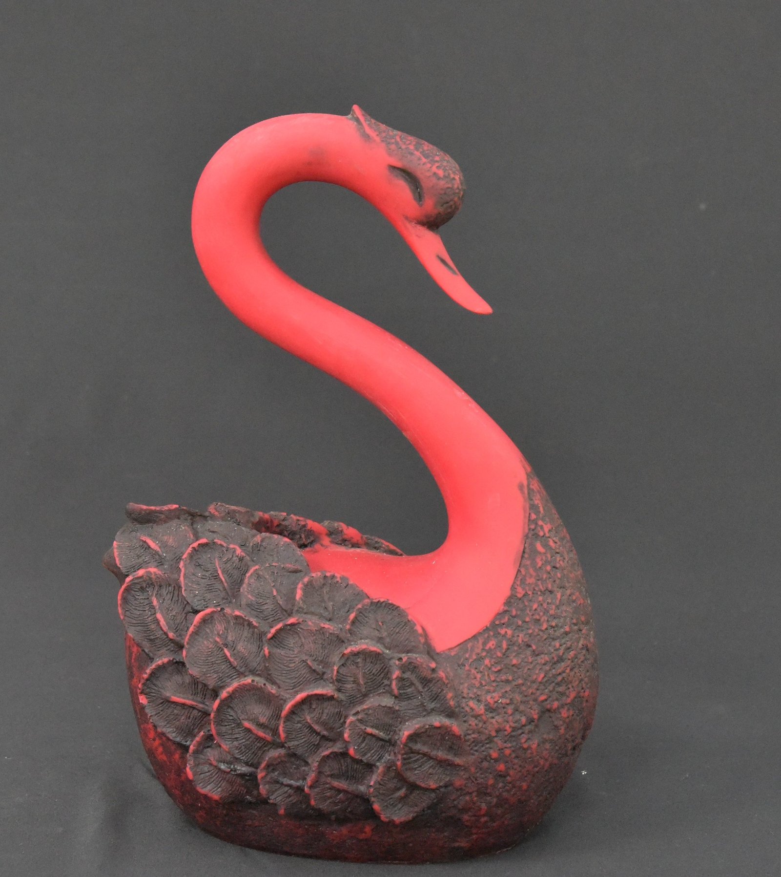 Add a touch of grace and modern elegance to your space with this stunning red and black swan figurine. Crafted from durable hard plastic, this piece showcases a sleek, stylized design with intricately detailed feather textures and a rich two-tone finish. The swan’s elongated neck and downward gaze convey a sense of calm and sophistication, making it an eye-catching centerpiece for any room.