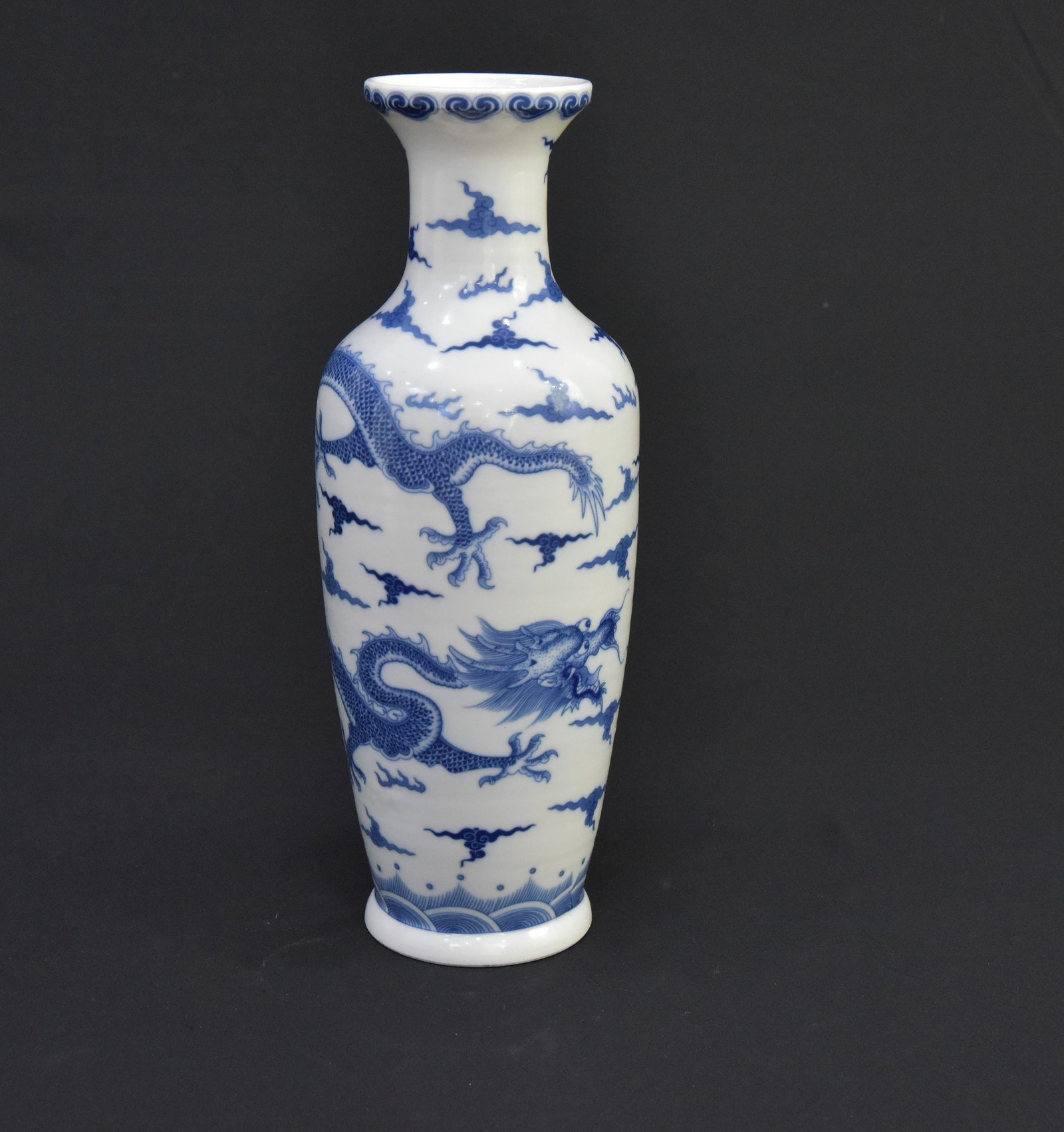 Exquisite Blue and White Chinese Porcelain Vase – Kangxi Style, Dragon & Cloud Motif