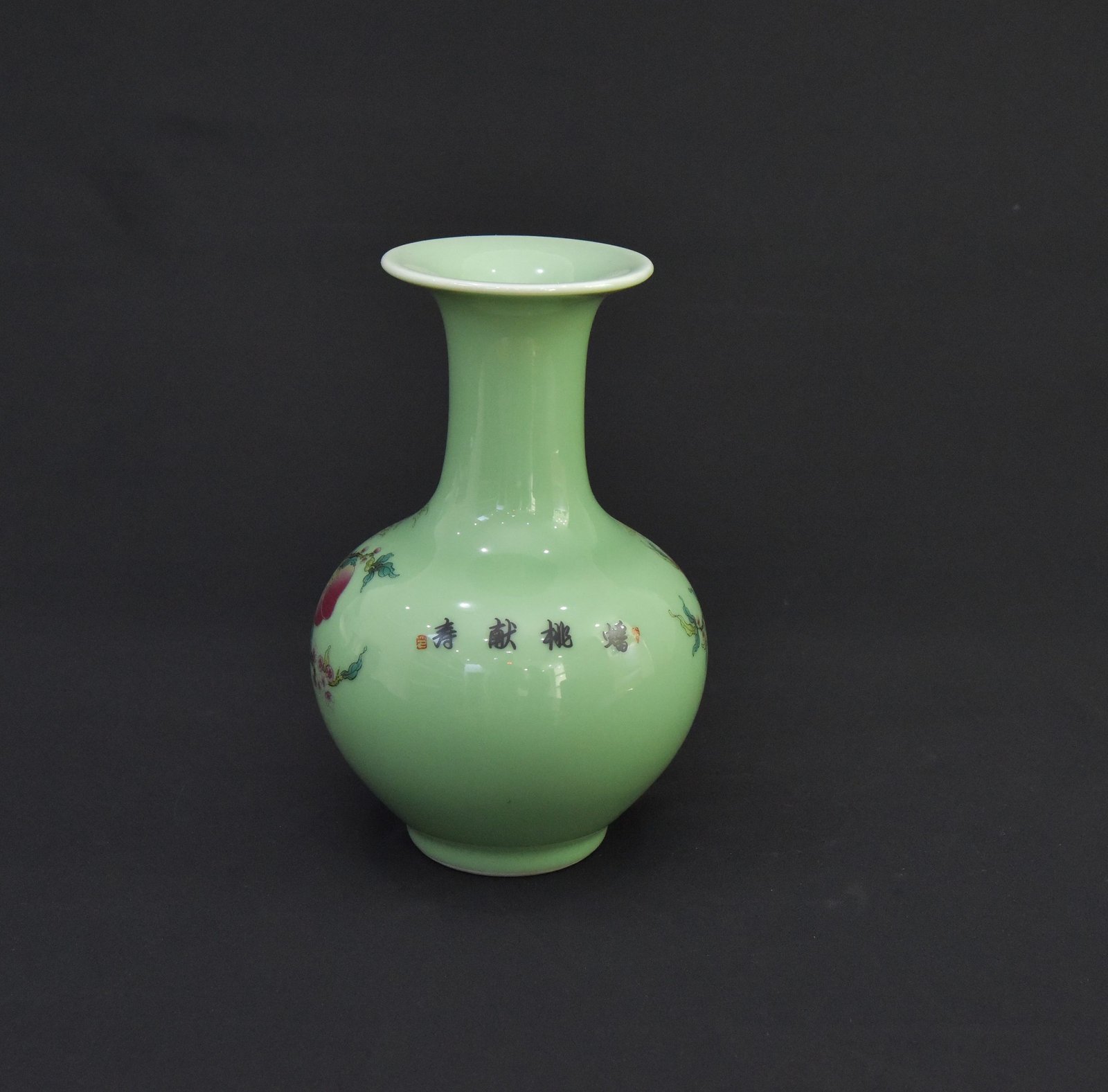 This exquisite porcelain vase is crafted in the style of the Qing Dynasty, showcasing intricate artwork with vibrant peach and bird motifs. It is elegantly adorned with the Chinese characters èŸ æ¡ƒçŒ®å¯¿, which translate to “Peach of Immortality for Longevity,” symbolizing prosperity and long life—making it a perfect gift for birthdays and celebrations.