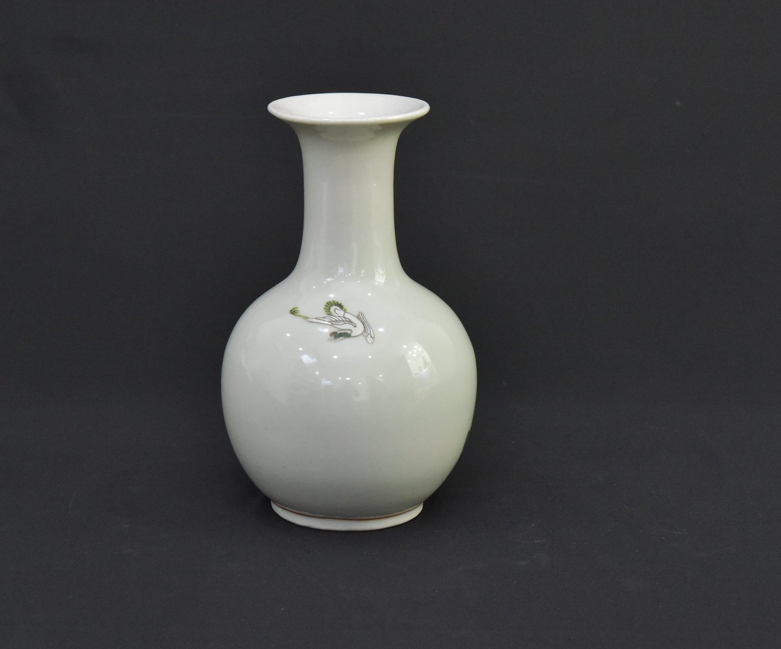This elegant ceramic vase, crafted in the 1990s, draws inspiration from traditional Qing Dynasty aesthetics. Featuring a beautifully detailed floral and bird motif, this piece captures the essence of classic Chinese porcelain artistry. The vase has a bulbous body and a narrow flared neck, making it an eye-catching decorative piece for any interior.