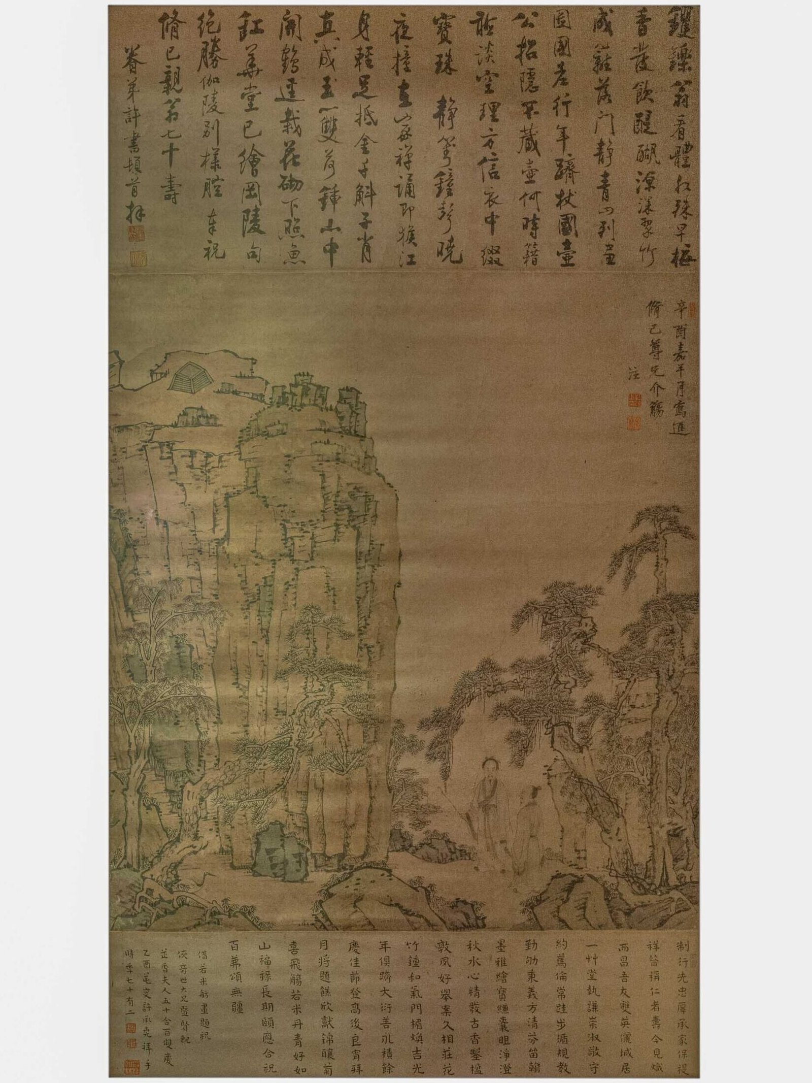 Discover the artistry of a scholar’s garden within the confines of a beautifully painted folding fan. This miniature landscape painting depicts a serene garden scene with pavilions, bridges, and meandering pathways, encapsulating the essence of traditional Chinese garden design.