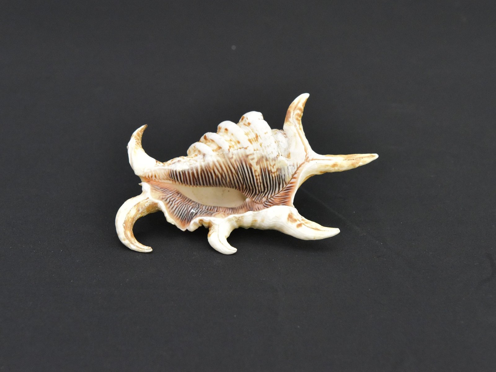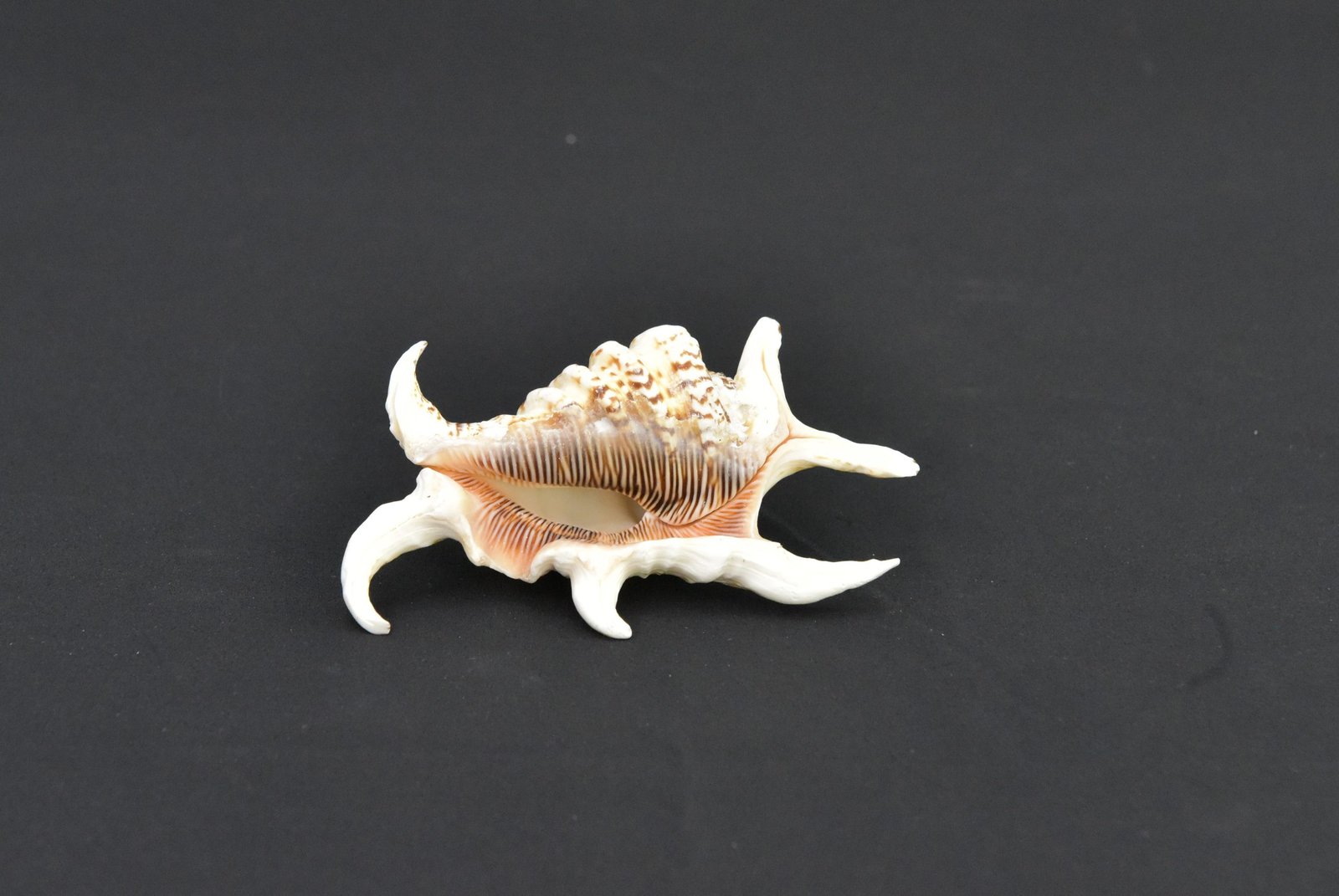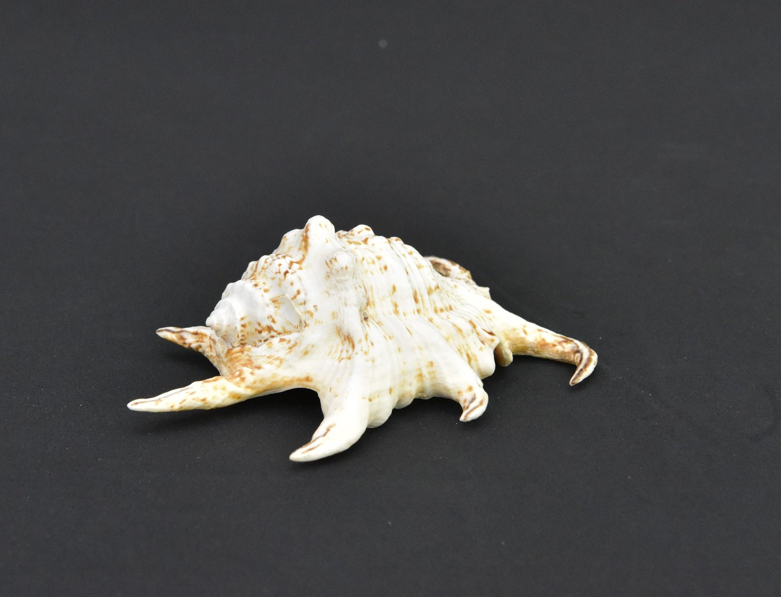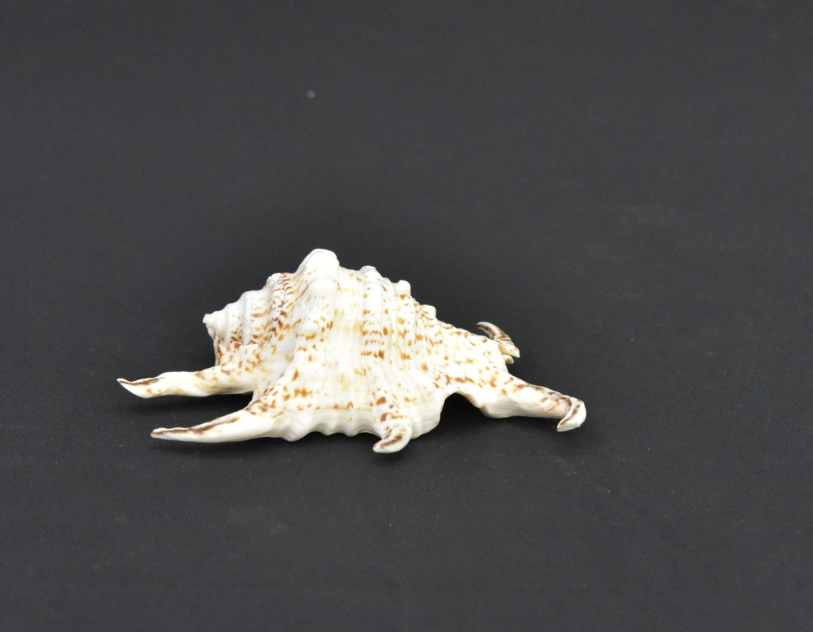 Add a striking touch of coastal beauty to your decor or collection with this stunning Spiny Spider Conch Shell. Known for its distinctive elongated spines and elegant natural curves, this species is prized for its intricate form and warm beige and caramel-toned marbling.