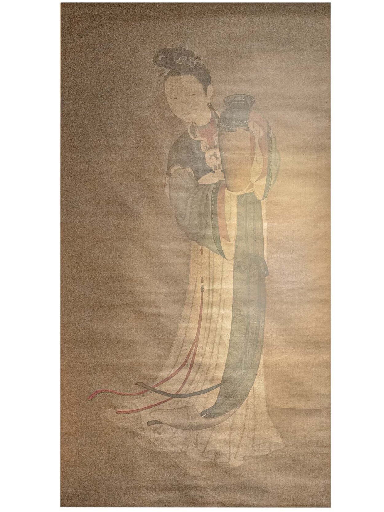 Step into a realm of tranquility with this exquisite folding screen depicting a mist-covered mountain landscape. The artist’s brushstrokes convey a sense of ethereal beauty, as mountains emerge and disappear into the mist, evoking a sense of mystery and serenity.