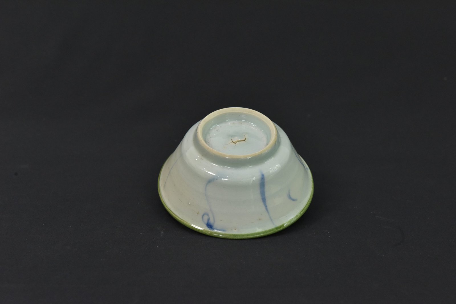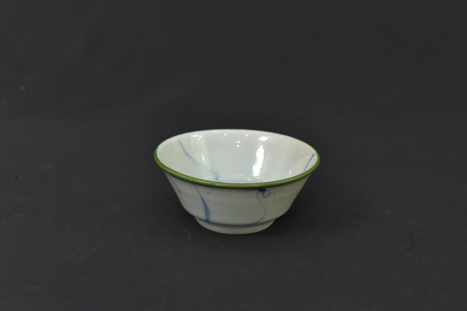 This porcelain bowl reflects the style and artistry of the 1960s Cultural Revolution period. Featuring a smooth white glaze with soft blue brushwork and a green-toned rim, it carries the aesthetic simplicity and charm characteristic of mid-20th century Chinese ceramics. The base reveals a traditional unglazed foot ring, indicative of its production style during that era.