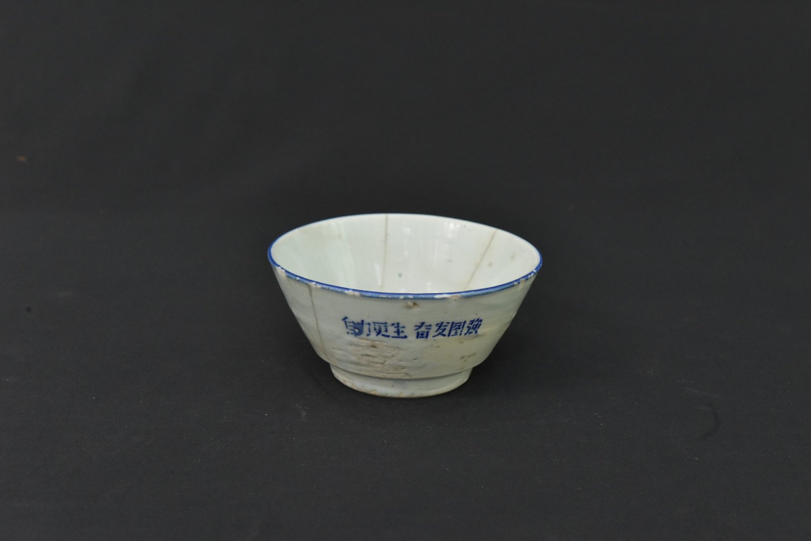 Such bowls were commonly used in communal dining settings, symbolizing the collectivist spirit and socialist ideology promoted during the Great Leap Forward and Cultural Revolution periods. This piece is an authentic representation of the everyday items infused with political messaging during mid-20th century China.