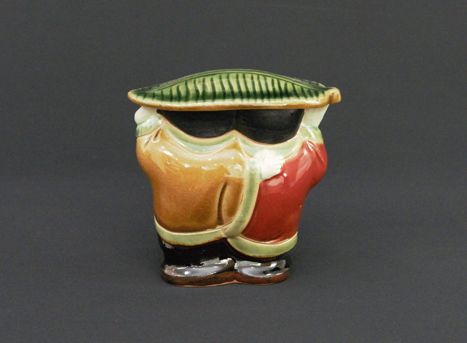 Beautifully glazed in warm earth tones and subtle greens, this figurine is a striking combination of cultural expression and mid-century craftsmanship.