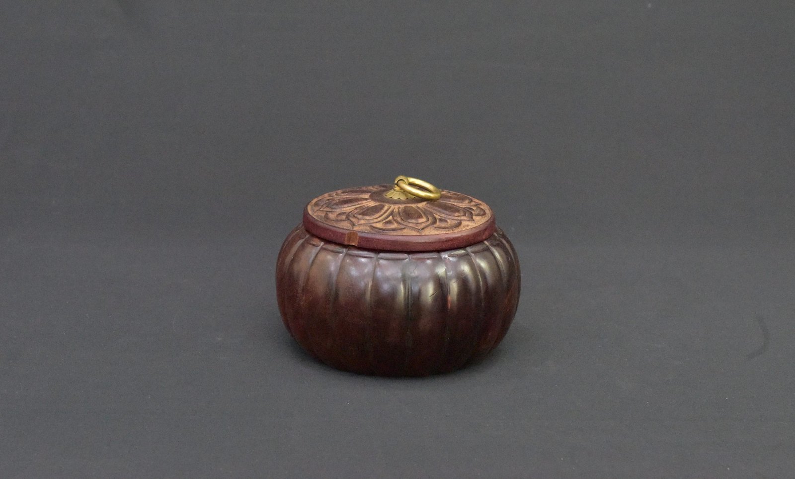 Design: Pumpkin-shaped base, lotus motif lid
