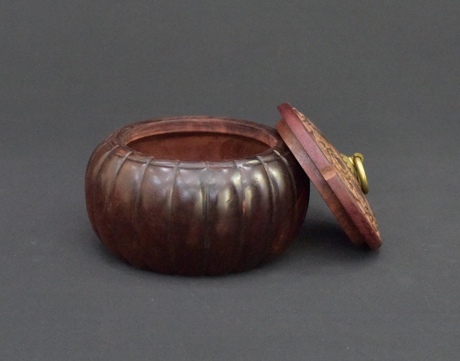 Material: Wood with brass ring on lid