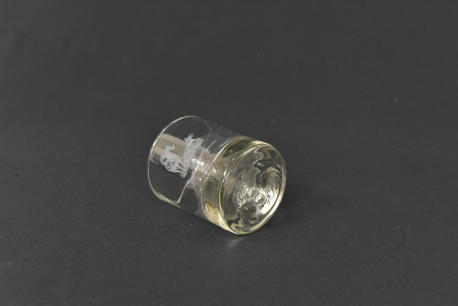 This elegant limited edition whisky glass from the 1970s features a detailed etched design of a ram in a natural landscape, adding a touch of sophistication and character to any barware collection. Crafted from fine crystal, it boasts a solid base and a refined shape, ideal for serving whisky, bourbon, or other premium spirits.