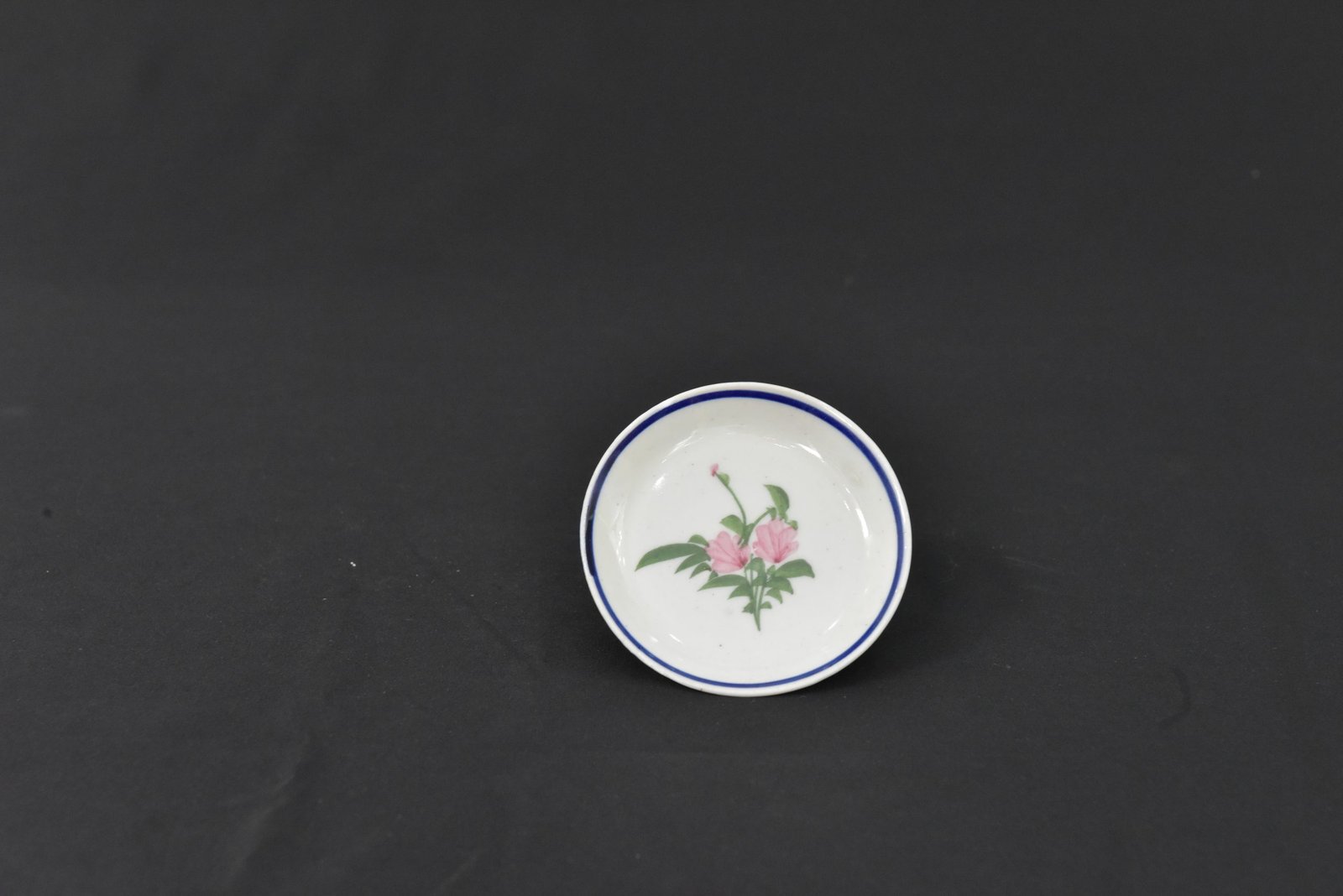 Add a touch of vintage charm to your collection with this beautiful 1970s porcelain saucer. Featuring a delicate hand-painted floral motif in soft pink and green, this piece is accented by a classic cobalt blue rim. Ideal for collectors, tea enthusiasts, or as an elegant decorative display.