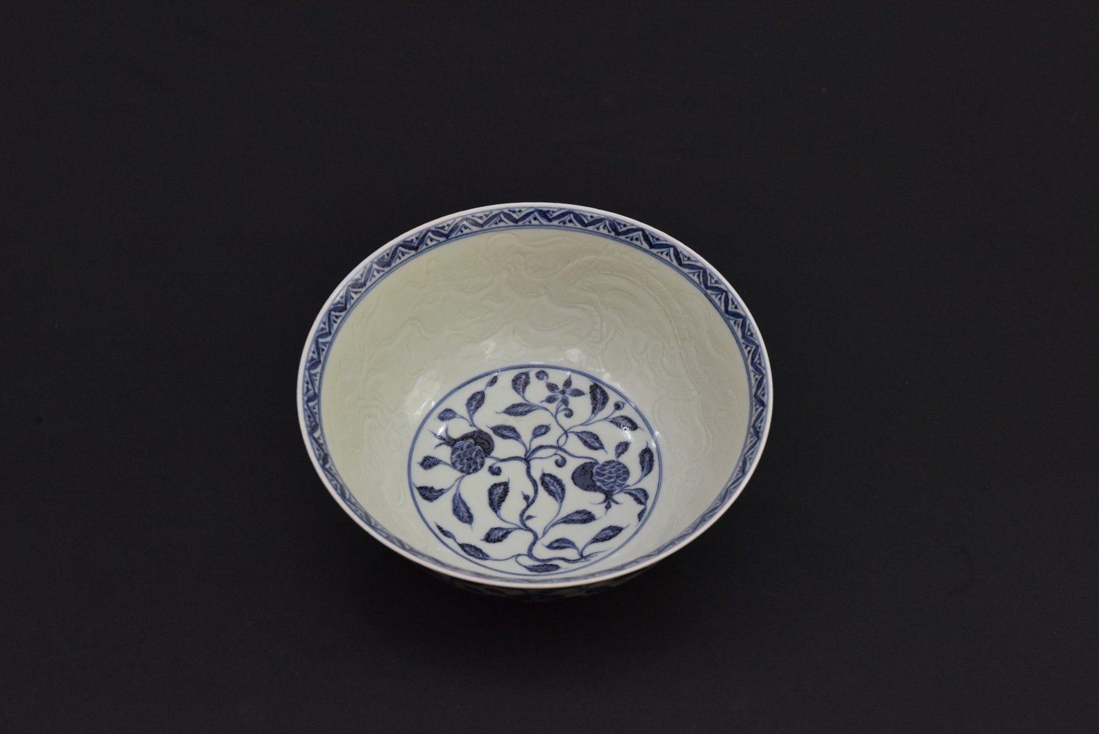 Design: Underglaze blue floral with incised dragon (暗刻龙纹)