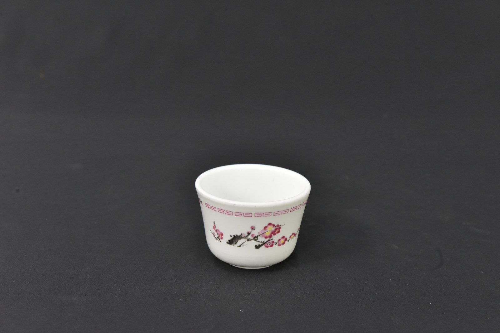 Add a touch of traditional elegance to your collection with this beautiful vintage porcelain tea cup, featuring a classic 1980s design. The cup showcases intricate hand-painted plum blossom motifs and a decorative pink border along the rim, reflecting timeless Chinese artistry.