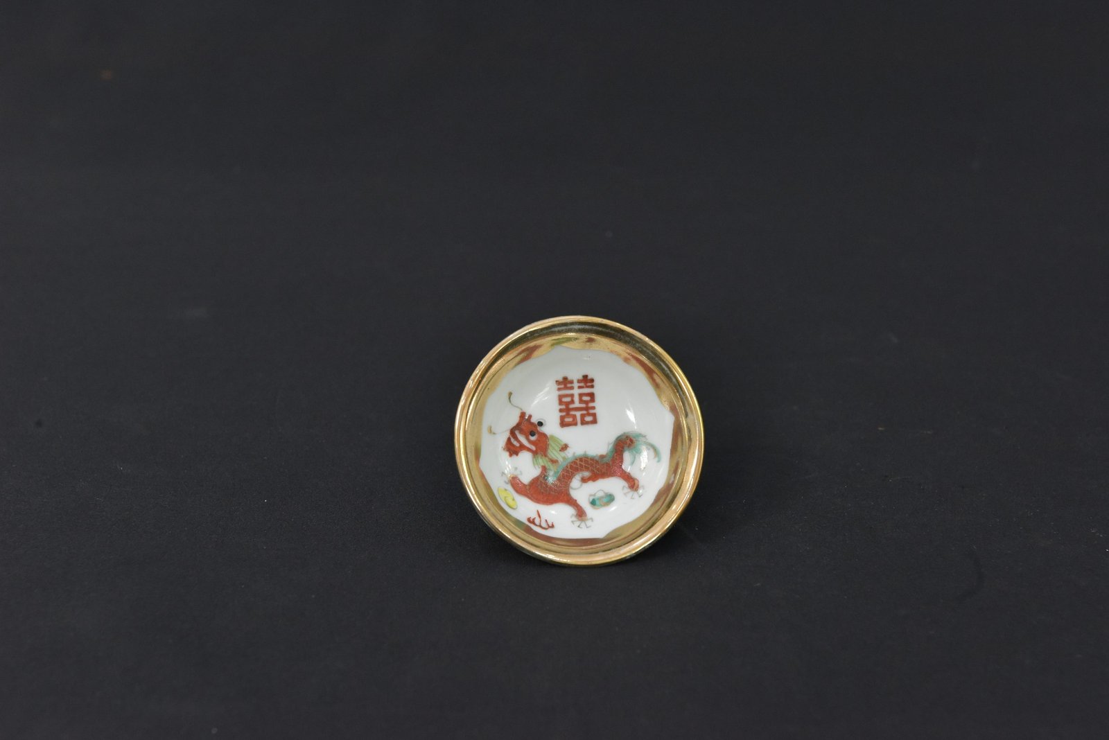 Vintage 1980s Chinese Porcelain Trinket Dish – Dragon & Double Happiness Symbol – Gold Rim