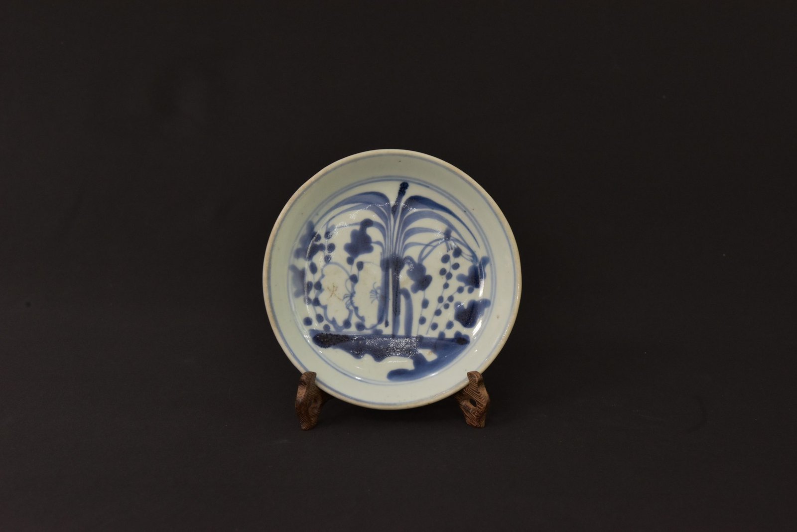 A finely crafted blue and white porcelain plate featuring a traditional landscape scene with stylized trees and foliage. The central motif is executed in rich cobalt blue, framed by a simple double-line border along the rim. The classic design and balanced proportions make it a timeless decorative or collectible piece.