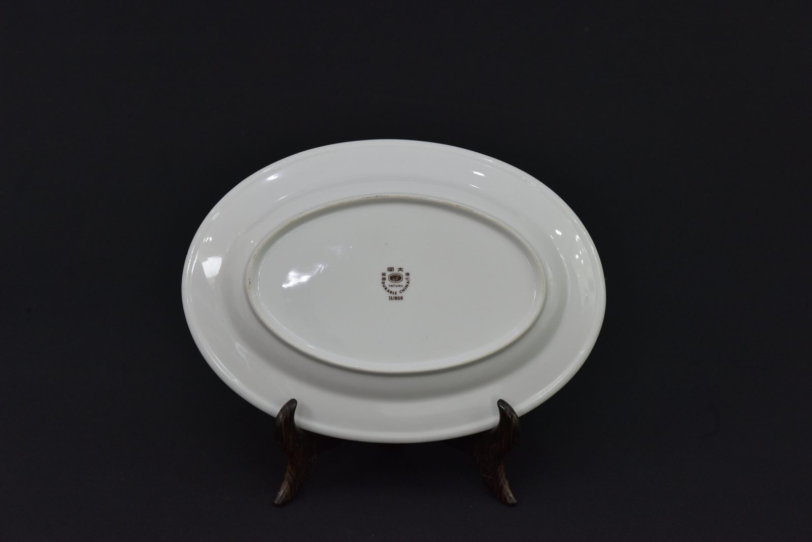 Elegant oval porcelain serving plate featuring a detailed plum blossom motif with Chinese calligraphy at the center. The rim is adorned with a pink geometric border pattern accented by small floral elements. Ideal for display, collection, or as a unique tableware piece.