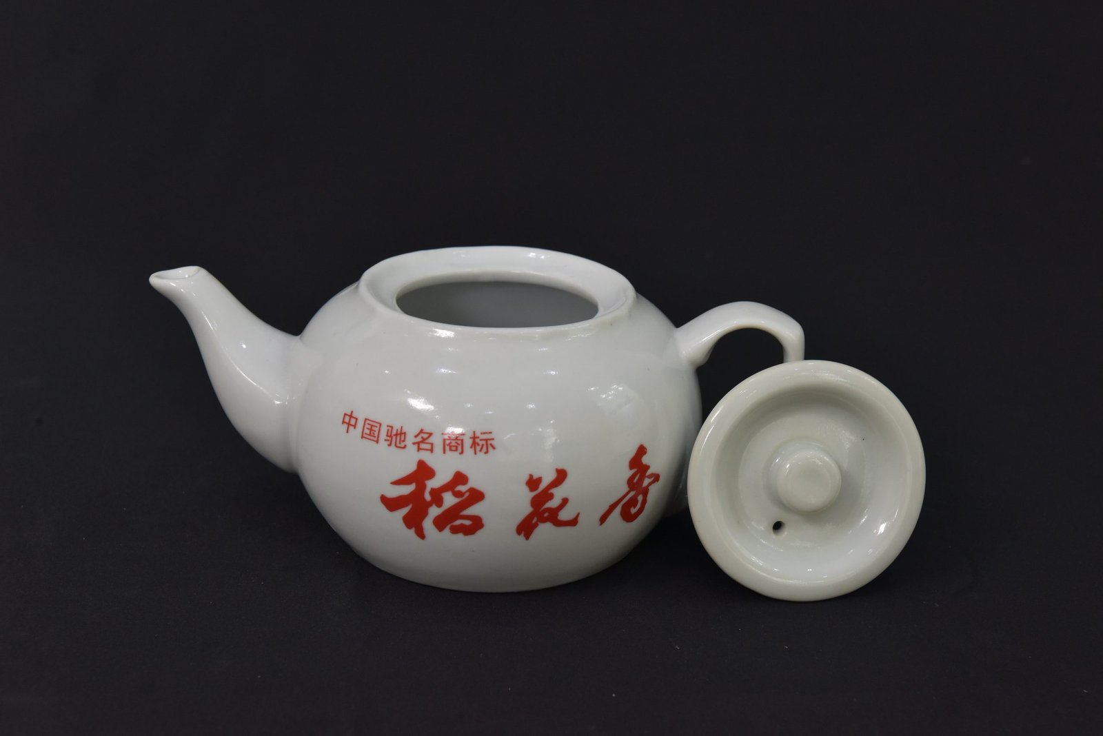 Vintage Chinese Porcelain Teapot with Red Characters – 1970s