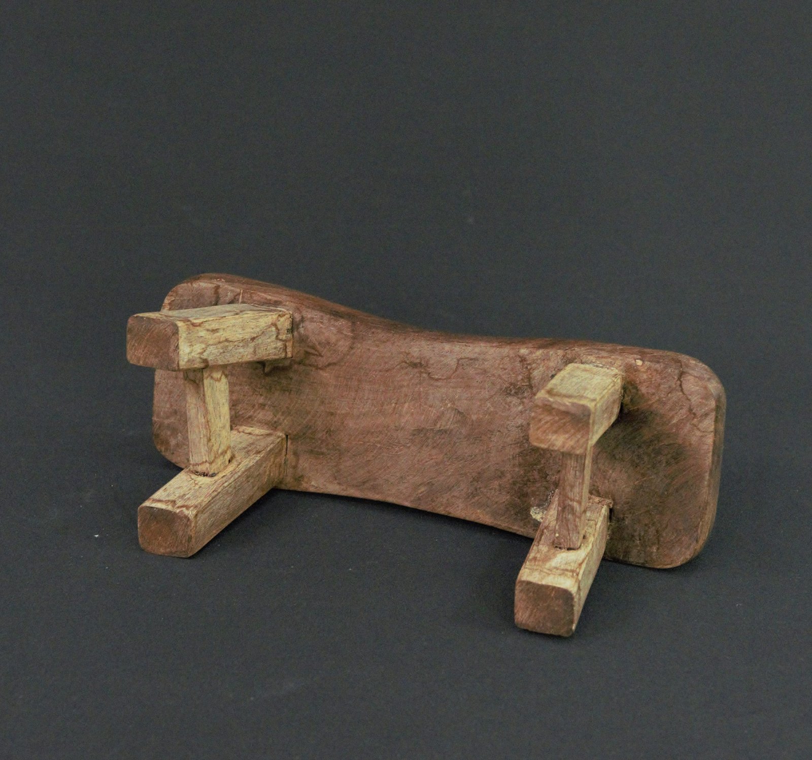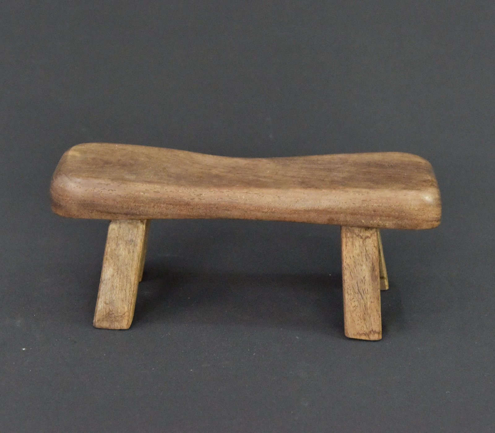 This is a charming, handcrafted wooden bench or small stool, likely from the 1980s. It features a subtly contoured seat and a simple, sturdy design. Beautifully made from solid wood. This could serve as a decorative accent piece or a small footstool.