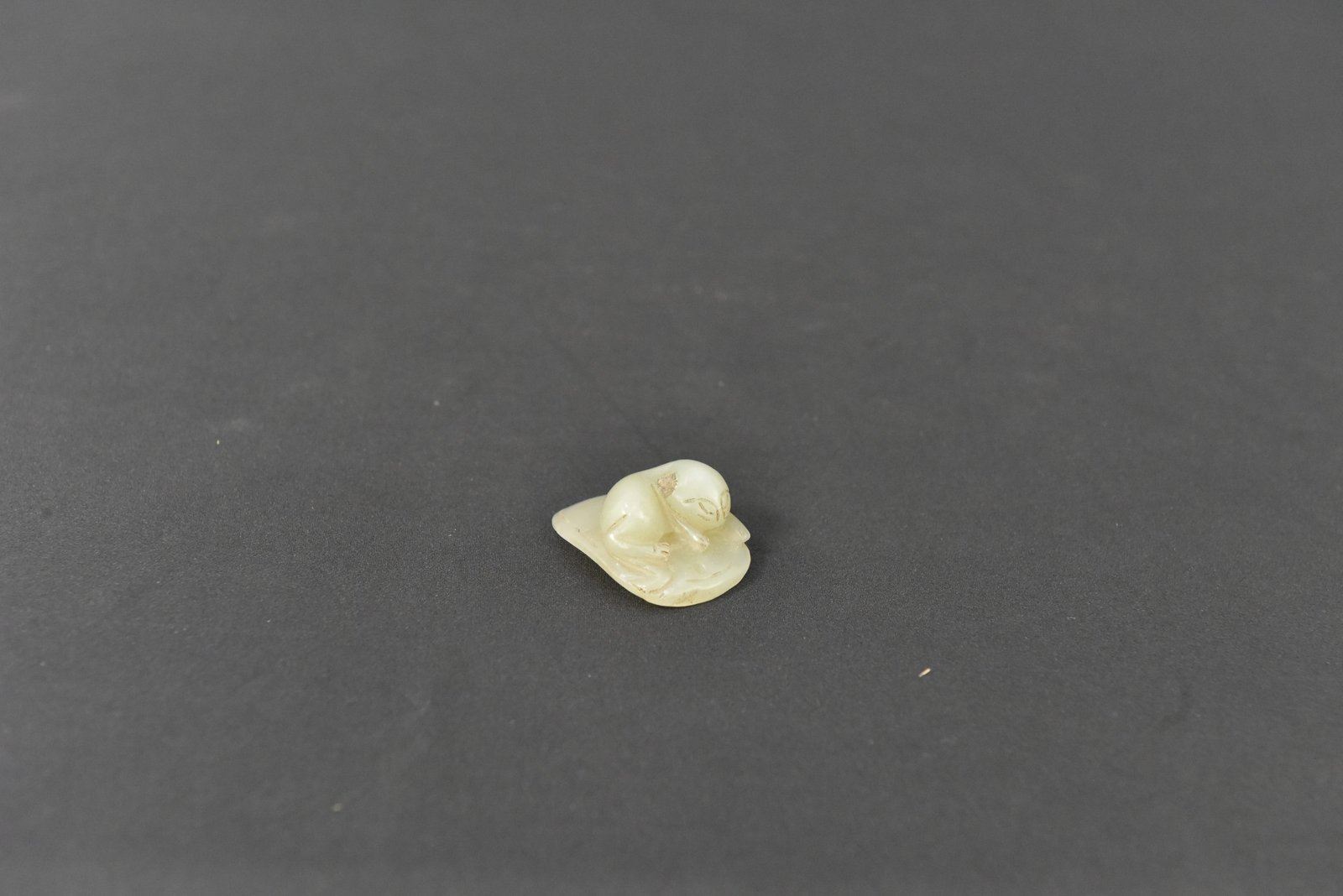 This finely carved jade figurine from the 1980s depicts a frog resting on a leaf. The piece showcases smooth detailing and a natural luster that highlights the stone’s unique qualities. A wonderful addition for collectors of jade, vintage décor, or symbolic animal carvings.