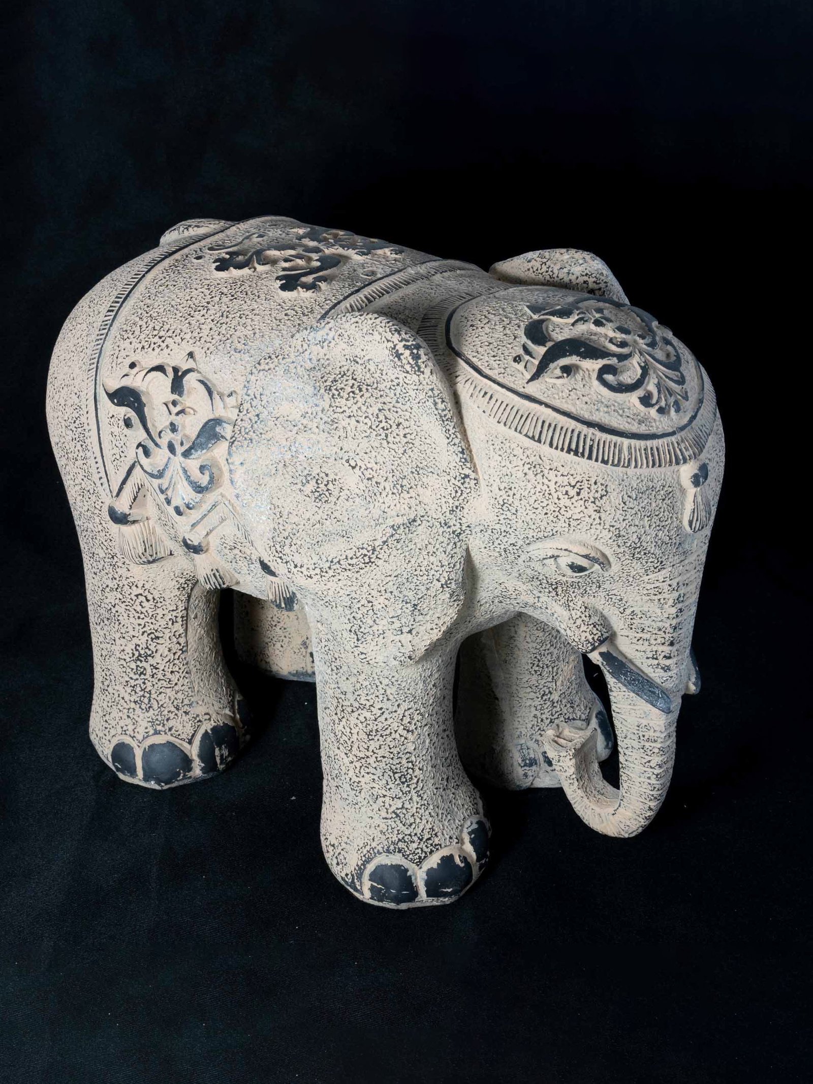 Created with the traditional technique of the lost-wax (Ã la cire perdue) which allows for great precision and finesse in the details, this bronze statue depicts a charming baby elephant that one can imagine is walking gingerly towards his or her mother. The left leg forward and the trunk neatly tucked in, the elephant is depicted with great details, from his tusks to his wrinkled skin. With its nice proportions and skillful depiction, this vintage lost wax cast bronze baby elephant table top sculpture from the late 20th century will make for a charming decorative addition to any home!